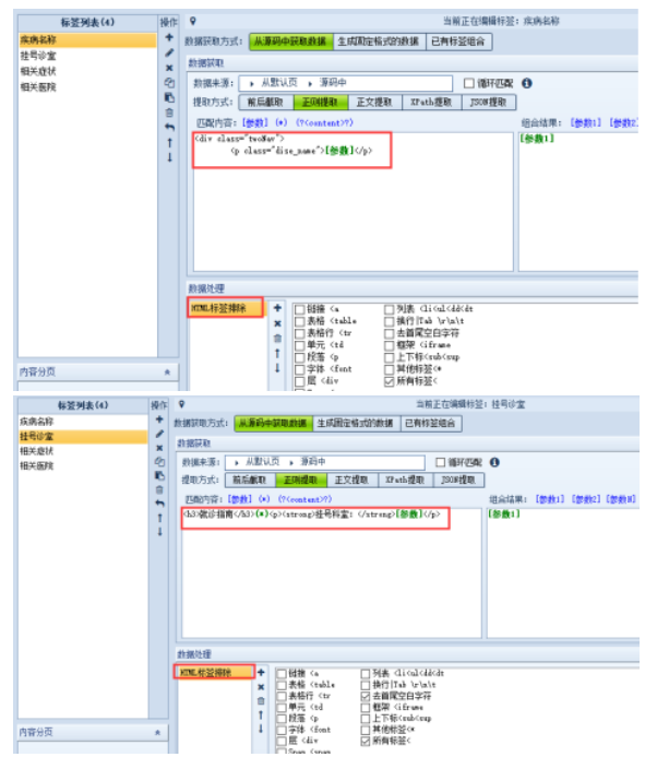 正常獲取后內(nèi)容頁地址后,處理采集的標簽字段